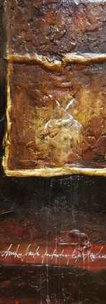 Hints of the alchemical reference can be found in the symbolic use of different materials such as melted lead and gold leaf, alongside bitumen, charcoal, ashes and many others.